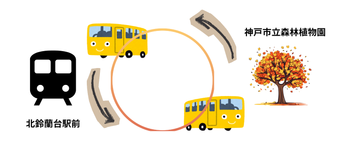 無料の送迎バスは植物園最寄り「北鈴蘭台駅」の前から、ただし本数は1時間に1~2本と少ないので事前にチェックがおすすめ。