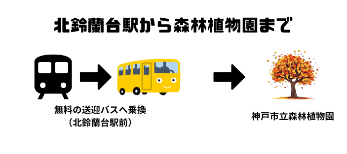 無料の送迎バスは植物園最寄り「北鈴蘭台駅」の前から、ただし本数は1時間に1~2本と少ないので事前にチェックがおすすめ。